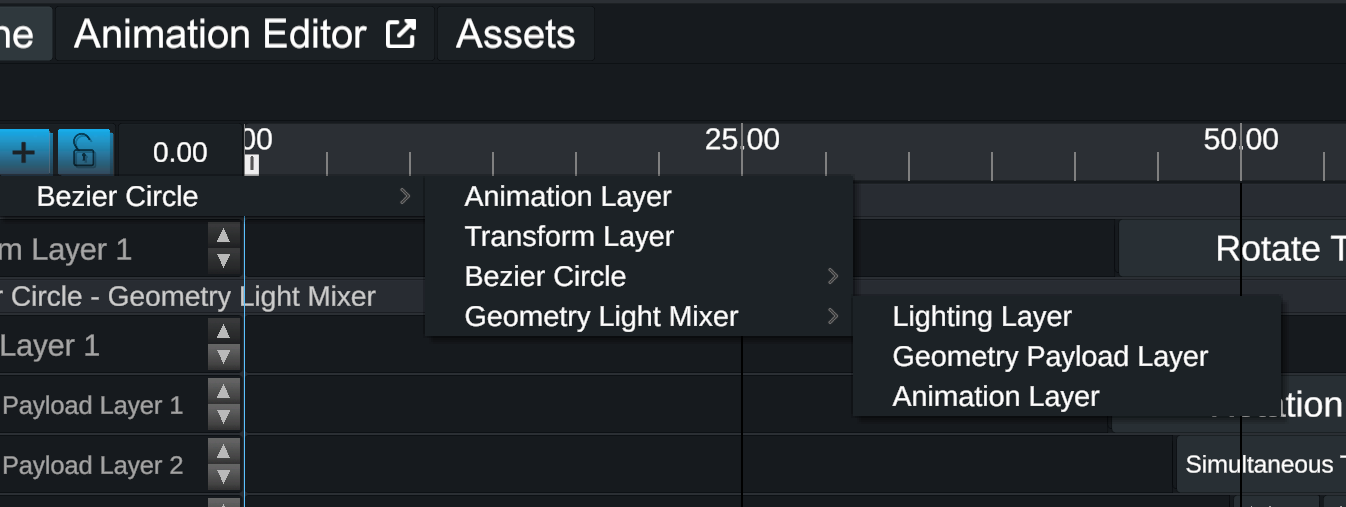 To create yaw targets, a tracked shape must contain a Geometry Payload Layer with Payload Target Events. Geometry Payload Layers can be placed inside of a Geometry Light Mixer component.
