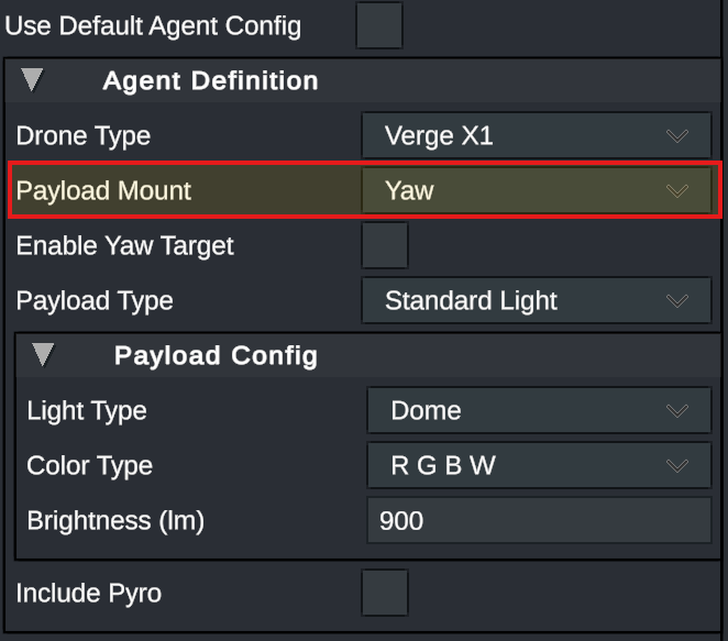 To activate yaw control, go to the launchpad inspector and make sure that "Use Default Agent Config" is unchecked. Set "Payload Mount" to "Yaw".
